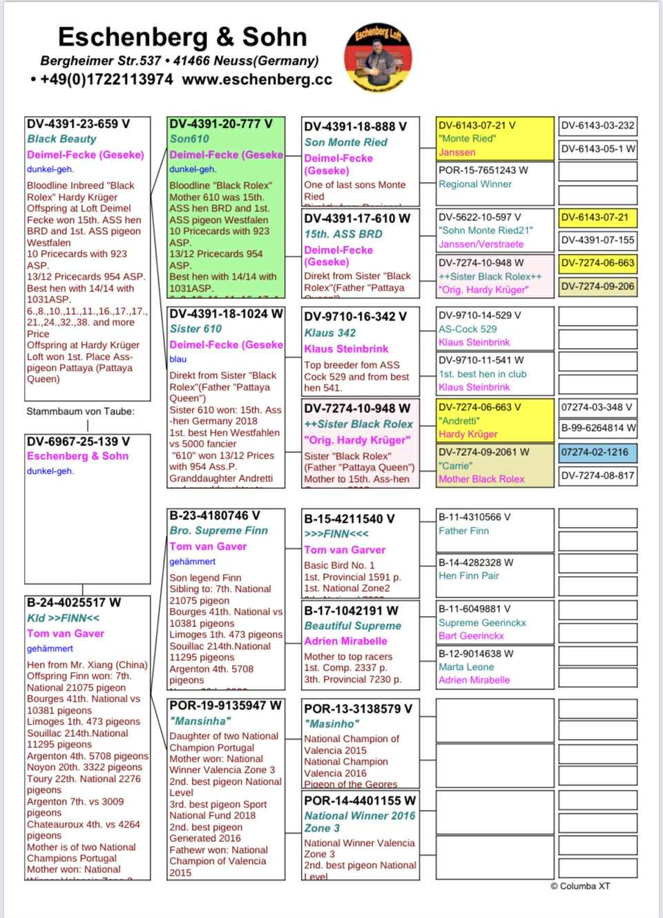 Sire: “Black Beauty” bloodlines of “Black Rolex” of Hardy Kruger