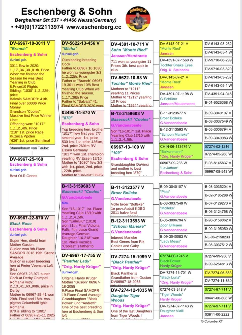 Inbred grandson of “Cooles” #1 base cock for Oliver. Her father is a proven racer in club racing in Germany and her mother is half-sister to a top OLR performer.
